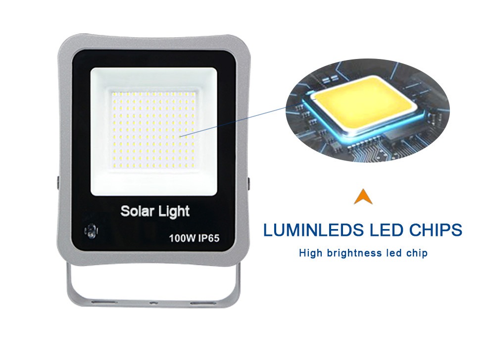 - √ 170lm/W 초고휘도 - 100W 고루멘 태양광 투광등은 최대 350제곱미터 조명을 지원하며, 농구 경기장 조명 4~5개, 축구장 반쪽 조명 11개와 같습니다.
